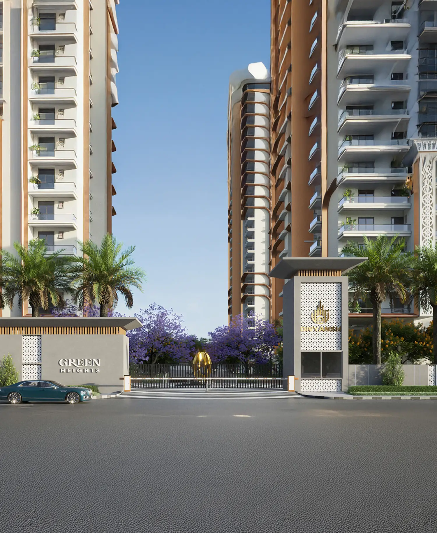 Divyansh Green Heights in Greater Noida is an upcoming landmark of elevated living, offering premium 3 & 4 BHK high-rise residences designed for those who seek a blend of sophistication, comfort, and nature. Rising majestically with G+32 & G+33 floors, this architectural marvel redefines skyline luxury with thoughtfully designed apartments featuring wide balconies that open up to stunning panoramic views and invite ample natural light and ventilation. The project is thoughtfully planned with over 60% of the total area dedicated to lush greenery, landscaped gardens, and open spaces-ensuring a refreshing and serene living experience amidst urban convenience. With every detail crafted to elevate modern lifestyles, Divyansh Green Heights promises not just a home, but a lifestyle enriched by elegance, nature, and the ease of contemporary urban living.